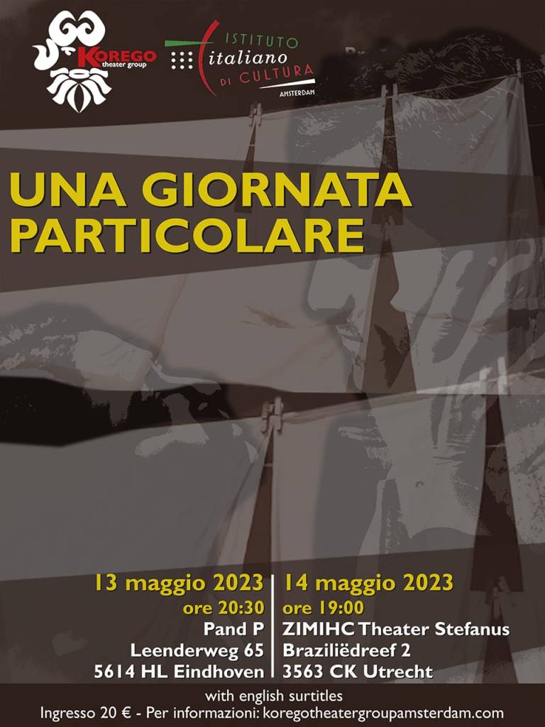 Tratto dall’omonimo film di Ettore Scola, questo spettacolo narra la storia di Antonia e Gabriele, due anime sole costrette a subire le regole di un mondo che per loro ha destinato solo umiliazione e sottomissione.